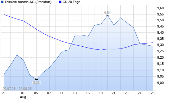 Mit dem Rücksetzer auf 9,30 EUR hat die Telekom Austria-Aktie am 28.08.2025 die 20-Tage-Linie nach unten gekreuzt.