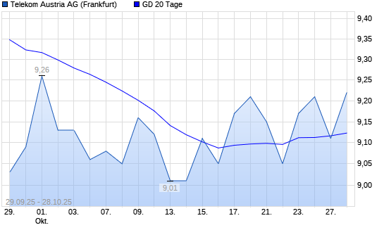 Mit dem Rücksetzer auf 9,11 EUR hat die Telekom Austria-Aktie am 27.10.2025 die 20-Tage-Linie nach unten gekreuzt.