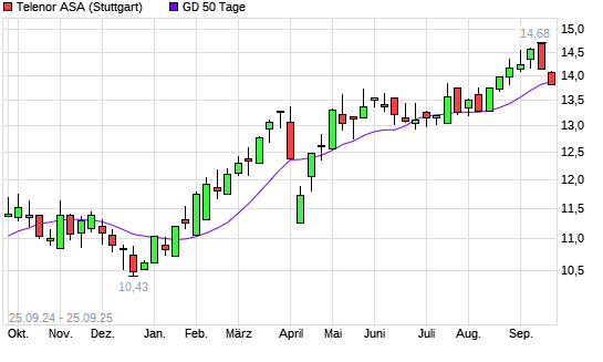 Mit dem Anstieg auf 13,99 EUR hat die Telenor-Aktie am 24.09.2025 die 50-Tage-Linie nach oben gekreuzt.