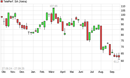 Mit dem Rücksetzer auf 61,60 EUR hat die Teleperformance-Aktie (ISIN FR0000051807) am 26.09.2025 ein neues 10-Jahres-Tief erreicht und damit den Kurs vom 16.09.2025 eingestellt.