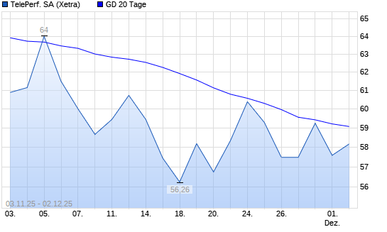 Mit dem Rücksetzer auf 58,72 EUR hat die Teleperformance-Aktie am 01.12.2025 die 20-Tage-Linie nach unten gekreuzt.