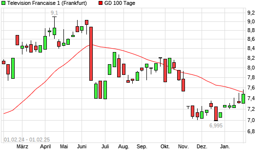 Mit dem Anstieg auf 7,48 EUR hat die Television Francaise 1-Aktie am 31.01.2025 die 100-Tage-Linie nach oben gekreuzt.