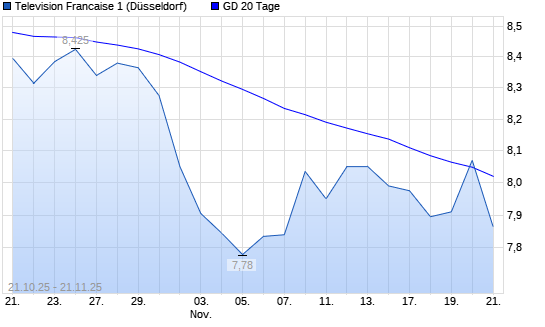 Mit dem Anstieg auf 8,07 EUR hat die Television Francaise 1-Aktie am 20.11.2025 die 20-Tage-Linie nach oben gekreuzt.