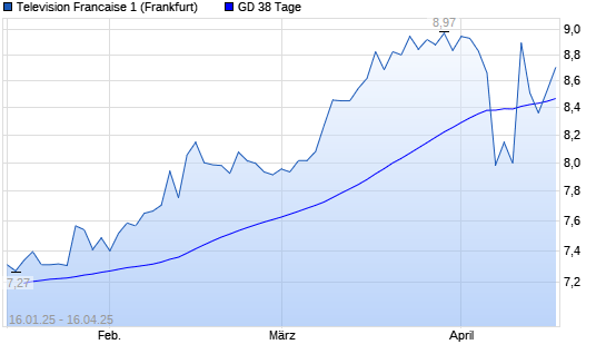 Mit dem Anstieg auf 8,52 EUR hat die Television Francaise 1-Aktie am 15.04.2025 die 38-Tage-Linie nach oben gekreuzt.