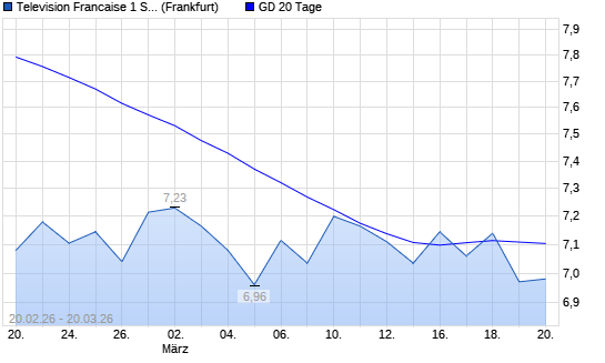 Mit dem Rücksetzer auf 6,97 EUR hat die Television Francaise 1-Aktie am 19.03.2026 die 20-Tage-Linie nach unten gekreuzt.