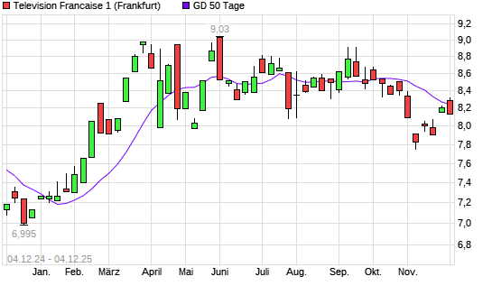Mit dem Rücksetzer auf 8,13 EUR hat die Television Francaise 1-Aktie am 03.12.2025 die 50-Tage-Linie nach unten gekreuzt.