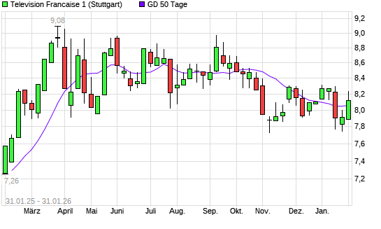 Mit dem Rücksetzer auf 8,09 EUR hat die Television Francaise 1-Aktie am 30.01.2026 die 50-Tage-Linie nach unten gekreuzt.