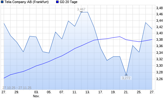 Mit dem Anstieg auf 3,43 EUR hat die Telia Company-Aktie am 26.11.2025 die 20-Tage-Linie nach oben gekreuzt.