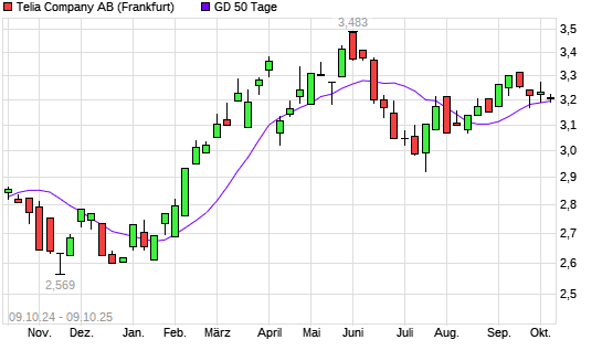 Mit dem Rücksetzer auf 3,19 EUR hat die Telia Company-Aktie am 08.10.2025 die 50-Tage-Linie nach unten gekreuzt.