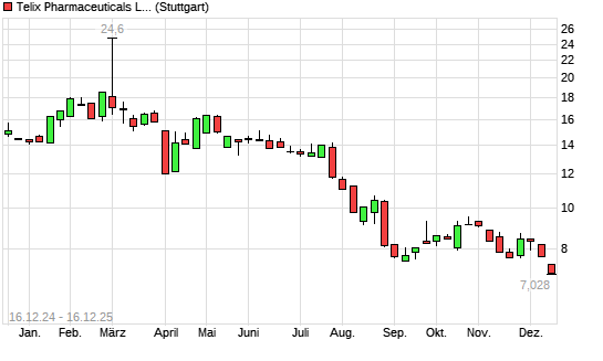 Mit dem Rücksetzer auf 7,48 EUR hat die Telix Pharmaceuticals-Aktie (ISIN AU000000TLX2) am 15.12.2025 ein neues 12-Monats-Tief erreicht und damit den Kurs vom 08.09.2025 eingestellt.