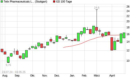 Mit dem Anstieg auf 16,45 EUR hat die Telix Pharmaceuticals-Aktie am 02.05.2025 die 100-Tage-Linie nach oben gekreuzt.