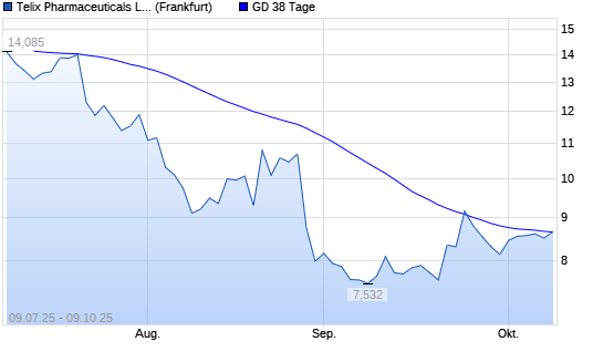 Mit dem Anstieg auf 8,66 EUR hat die Telix Pharmaceuticals-Aktie am 08.10.2025 die 38-Tage-Linie nach oben gekreuzt.