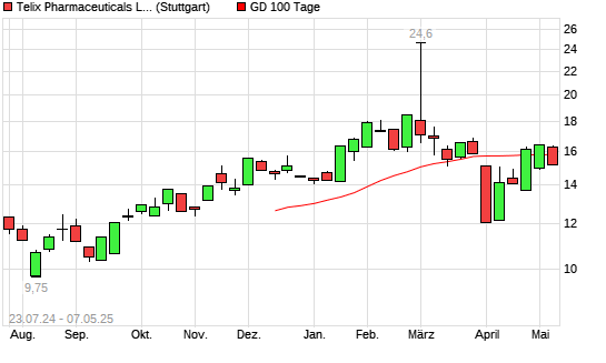 Mit dem Rücksetzer auf 15,84 EUR hat die Telix Pharmaceuticals-Aktie am 06.05.2025 die 100-Tage-Linie nach unten gekreuzt.