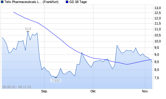Mit dem Rücksetzer auf 8,69 EUR hat die Telix Pharmaceuticals-Aktie am 05.11.2025 die 38-Tage-Linie nach unten gekreuzt.