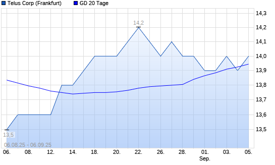 Mit dem Anstieg auf 14,00 EUR hat die Telus-Aktie am 05.09.2025 die 20-Tage-Linie nach oben gekreuzt.