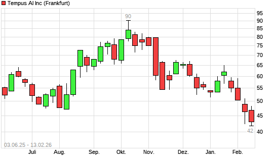 Mit dem Rücksetzer auf 42,80 EUR hat die Tempus AI-Aktie (ISIN US88023B1035) am 12.02.2026 ein neues All-Time-Low erreicht und damit den Kurs vom 05.02.2026 eingestellt.