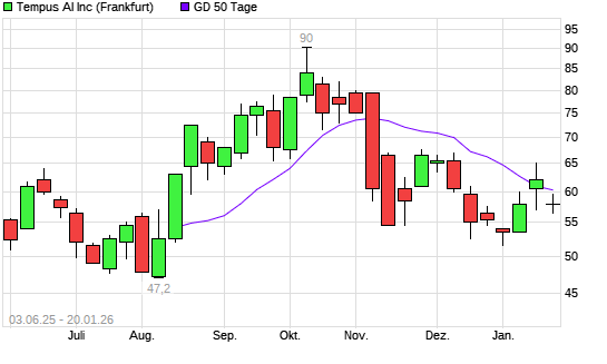 Mit dem Rücksetzer auf 58,50 EUR hat die Tempus AI-Aktie am 19.01.2026 die 50-Tage-Linie nach unten gekreuzt.