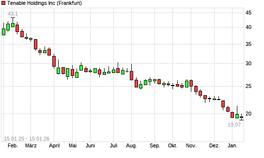 Mit dem Rücksetzer auf 19,30 EUR hat die Tenable-Aktie (ISIN US88025T1025) am 14.01.2026 ein neues 5-Jahres-Tief erreicht und damit den Kurs vom 02.01.2026 eingestellt.