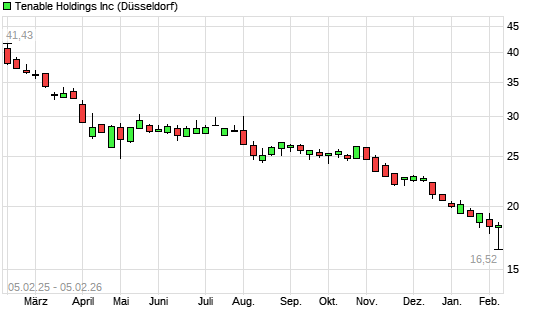 Mit dem Rücksetzer auf 16,66 EUR hat die Tenable-Aktie (ISIN US88025T1025) am 04.02.2026 ein neues 5-Jahres-Tief erreicht und damit den Kurs vom 03.02.2026 eingestellt.
