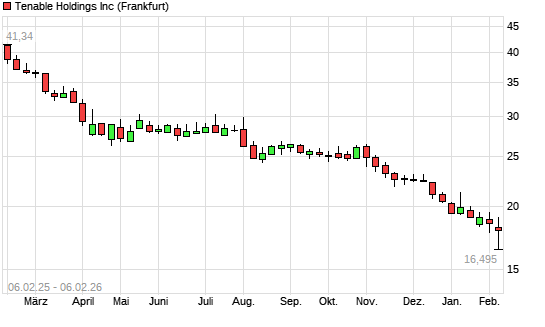 Mit dem Rücksetzer auf 16,58 EUR hat die Tenable-Aktie (ISIN US88025T1025) am 05.02.2026 ein neues 5-Jahres-Tief erreicht und damit den Kurs vom 04.02.2026 eingestellt.