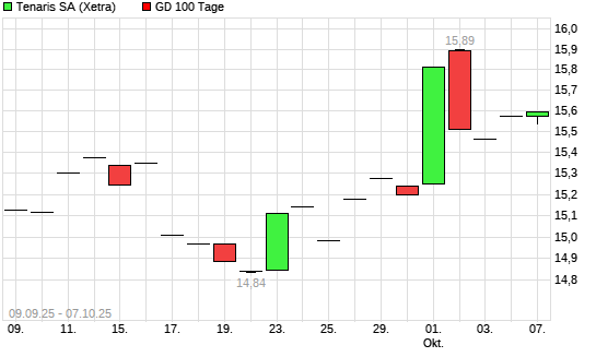 Mit dem Anstieg auf 15,48 EUR hat die Tenaris-Aktie am 06.10.2025 die 100-Tage-Linie nach oben gekreuzt.