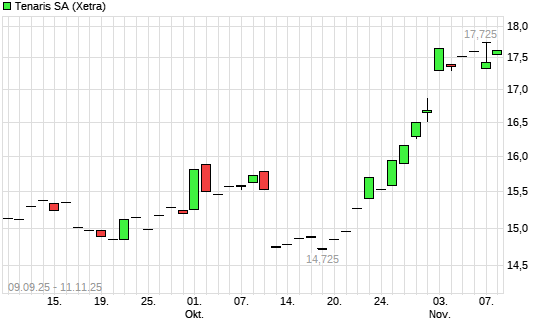 Mit dem Anstieg auf 17,63 EUR hat die Tenaris-Aktie (ISIN LU2598331598) am 10.11.2025 ein neues 6-Monats-Hoch erreicht und damit den Kurs vom 07.11.2025 eingestellt.Die Tenaris-Aktie befindet ...weiterlesen