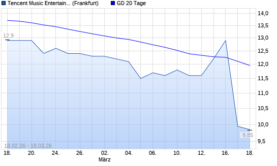 Mit dem Rücksetzer auf 9,95 EUR hat die Tencent Music Entertainment-Aktie am 17.03.2026 die 20-Tage-Linie nach unten gekreuzt.