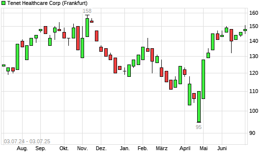Mit dem Anstieg auf 151,00 EUR hat die Tenet Healthcare-Aktie (ISIN US88033G4073) am 02.07.2025 ein neues 6-Monats-Hoch erreicht und damit den Kurs vom 03.06.2025 eingestellt.