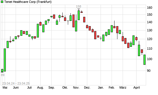 Mit dem Rücksetzer auf 95,00 EUR hat die Tenet Healthcare-Aktie (ISIN US88033G4073) am 22.04.2025 ein neues 6-Monats-Tief erreicht und damit den Kurs vom 07.04.2025 eingestellt.