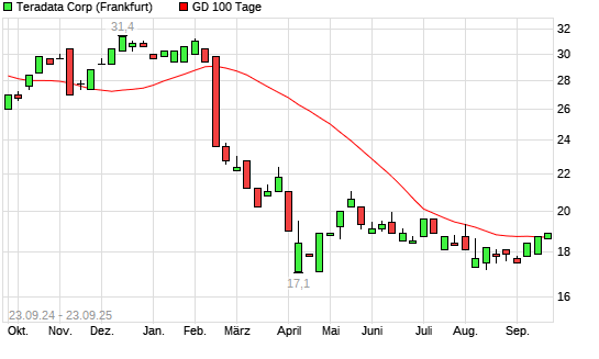 Mit dem Anstieg auf 18,70 EUR hat die Teradata-Aktie am 22.09.2025 die 100-Tage-Linie nach oben gekreuzt.