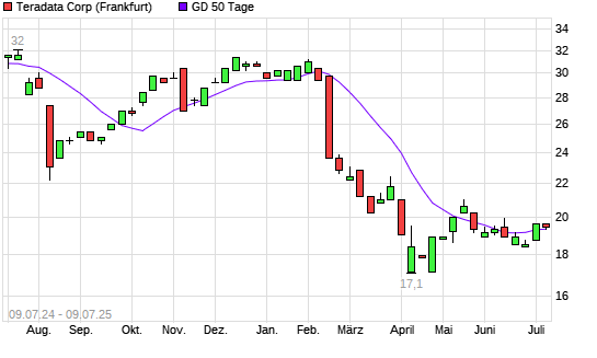 Mit dem Rücksetzer auf 19,30 EUR hat die Teradata-Aktie am 08.07.2025 die 50-Tage-Linie nach unten gekreuzt.