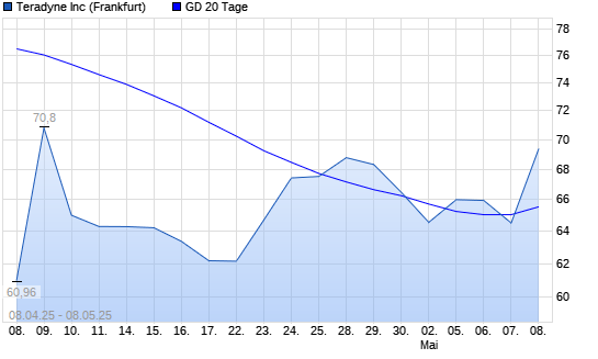 Mit dem Rücksetzer auf 64,51 EUR hat die Teradyne-Aktie am 07.05.2025 die 20-Tage-Linie nach unten gekreuzt.