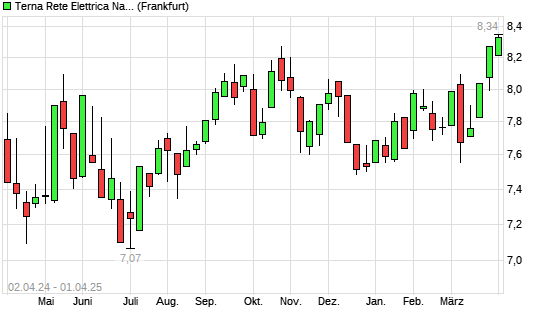 Mit dem Anstieg auf 8,29 EUR hat die Terna-Aktie (ISIN IT0003242622) am 31.03.2025 ein neues 12-Monats-Hoch erreicht und damit den Kurs vom 28.03.2025 eingestellt.