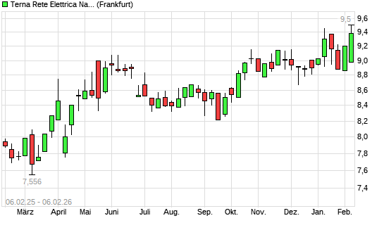 Mit dem Anstieg auf 9,38 EUR hat die Terna-Aktie (ISIN IT0003242622) am 05.02.2026 ein neues All-Time-High erreicht und damit den Kurs vom 08.01.2026 eingestellt.