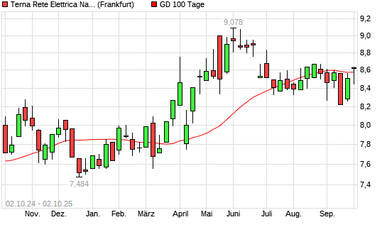 Mit dem Anstieg auf 8,62 EUR hat die Terna-Aktie am 01.10.2025 die 100-Tage-Linie nach oben gekreuzt.