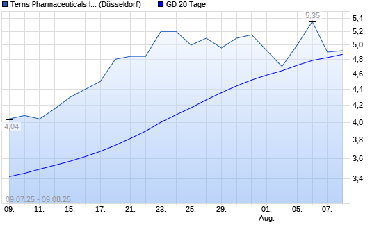 Mit dem Anstieg auf 5,20 EUR hat die Terns Pharmaceuticals-Aktie am 08.08.2025 die 20-Tage-Linie nach oben gekreuzt.