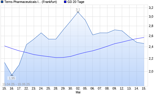 Mit dem Rücksetzer auf 2,48 EUR hat die Terns Pharmaceuticals-Aktie am 14.05.2025 die 20-Tage-Linie nach unten gekreuzt.