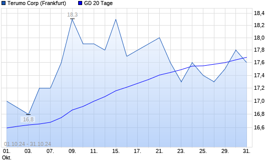 Mit dem Anstieg auf 17,80 EUR hat die Terumo-Aktie am 30.10.2024 die 20-Tage-Linie nach oben gekreuzt.