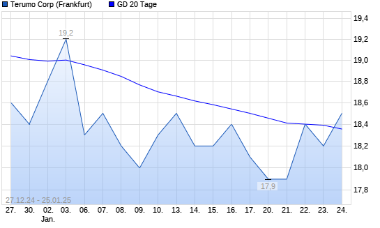Mit dem Anstieg auf 18,50 EUR hat die Terumo-Aktie am 24.01.2025 die 20-Tage-Linie nach oben gekreuzt.