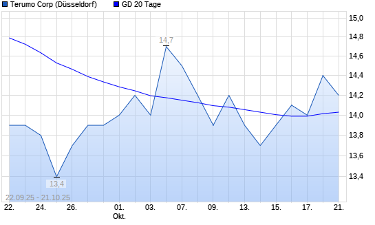 Mit dem Anstieg auf 14,30 EUR hat die Terumo-Aktie am 20.10.2025 die 20-Tage-Linie nach oben gekreuzt.