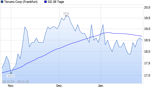 Mit dem Anstieg auf 18,60 EUR hat die Terumo-Aktie am 27.01.2025 die 38-Tage-Linie nach oben gekreuzt.