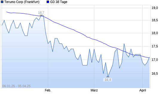 Mit dem Anstieg auf 17,10 EUR hat die Terumo-Aktie am 04.04.2025 die 38-Tage-Linie nach oben gekreuzt.