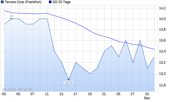Mit dem Rücksetzer auf 13,10 EUR hat die Terumo-Aktie am 01.12.2025 die 20-Tage-Linie nach unten gekreuzt.