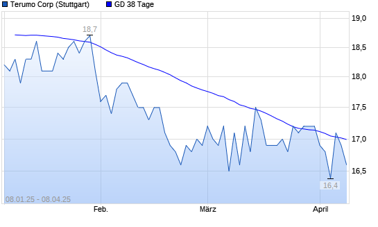 Mit dem Rücksetzer auf 16,50 EUR hat die Terumo-Aktie am 07.04.2025 die 38-Tage-Linie nach unten gekreuzt.Die Terumo-Aktie befindet sich seit dem 26.03.2025 im langfristigen Abwärtstrend ...weiterlesen