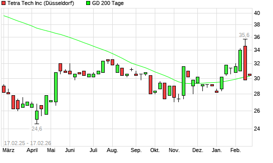 Mit dem Anstieg auf 30,60 EUR hat die Tetra Tech-Aktie am 16.02.2026 die 200-Tage-Linie nach oben gekreuzt.