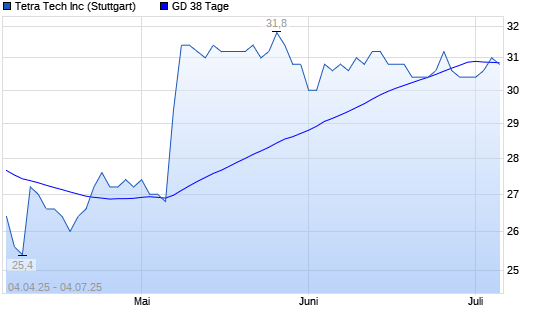 Mit dem Anstieg auf 30,80 EUR hat die Tetra Tech-Aktie am 03.07.2025 die 38-Tage-Linie nach oben gekreuzt.