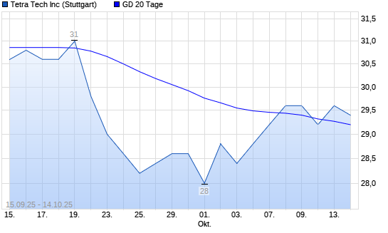 Mit dem Rücksetzer auf 28,60 EUR hat die Tetra Tech-Aktie am 13.10.2025 die 20-Tage-Linie nach unten gekreuzt.