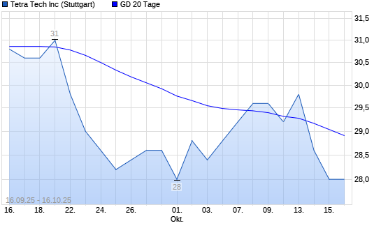 Mit dem Rücksetzer auf 28,40 EUR hat die Tetra Tech-Aktie am 15.10.2025 die 20-Tage-Linie nach unten gekreuzt.