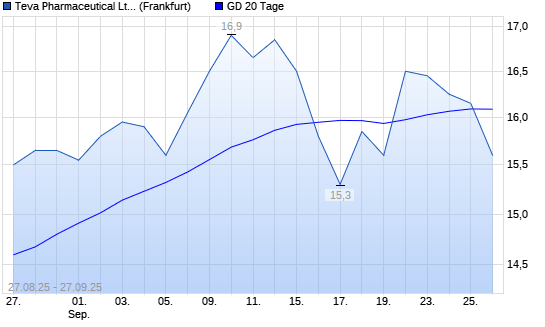 Mit dem Rücksetzer auf 15,60 EUR hat die Teva Pharmaceutical ADR-Aktie am 26.09.2025 die 20-Tage-Linie nach unten gekreuzt.