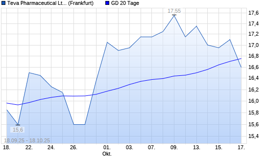 Mit dem Rücksetzer auf 16,60 EUR hat die Teva Pharmaceutical ADR-Aktie am 17.10.2025 die 20-Tage-Linie nach unten gekreuzt.